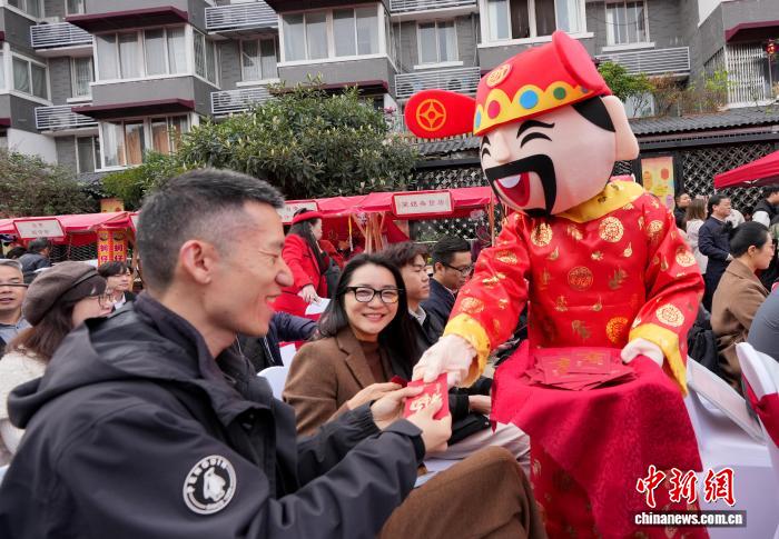 3月3日,阴历一月105元宵节,4川成皆,财神收白包。中新社记者 安源 摄